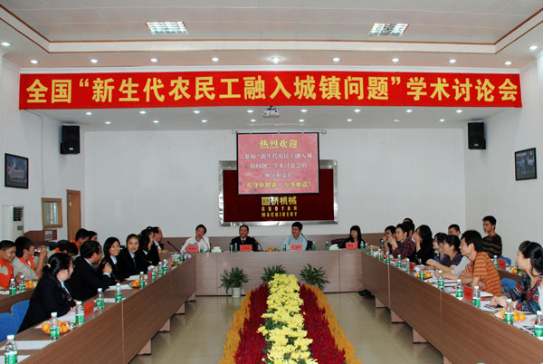 11月8日上午,由广州市社会科学届联合会、广州大学广州发展研究院、广州大学人权研究中心主办的全国新生代农民工融入城镇问题学术研讨会在广州市华体会在线官网设备制造有限公司隆重召开。中国社科院及全国多所知名高等院校专家、学者齐聚一堂,就新生代农民工融入城镇问题与我司员工代表畅所欲言、各抒己见,展开了热烈的讨论。