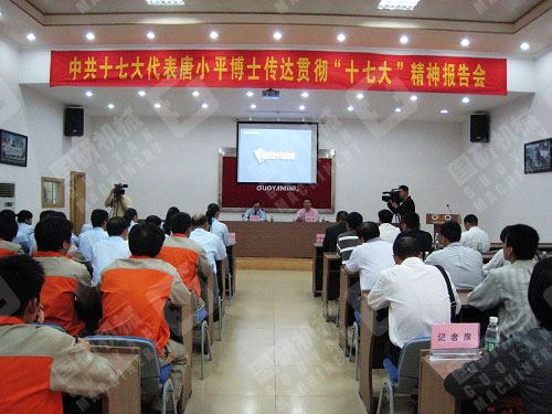 11月14日下午,阳光灿烂,秋风送爽,在喜庆的锣鼓和欢声笑语中,座落于广州市天河区珠吉街的广州市华体会在线官网设备制造有限公司迎来了党的十七大代表唐小平博士。唐小平代表面对国研公司党支部全体党员和公司全体员工,作了一场丰富详实、精彩生动的报告。珠吉街党工委、办事处领导班子成员、街属各支部书记、以及天河区委组织部、区委宣传部的有关负责同志应邀出席了报告会。